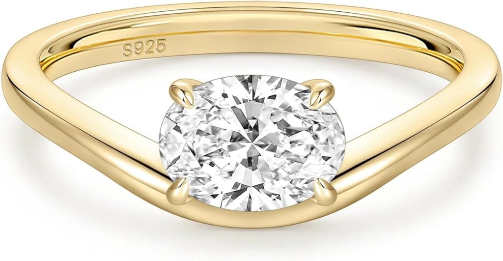 EAMTI 1.5CT 925 Sterling Silver Engagement Rings for Women Oval Cut CZ Bands Solitaire Cubic Zirconia Curved Wedding Promise Gold Rings for Her Size 4-10