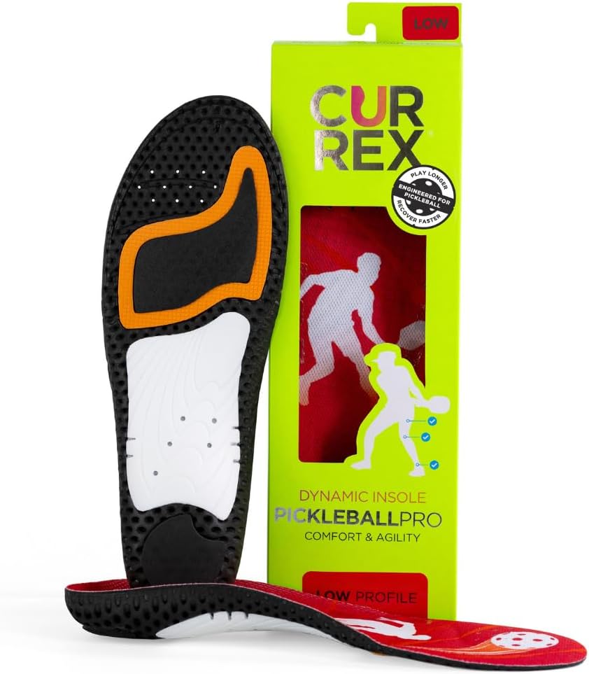 CURREX PICKLEBALLPRO Insoles for Pickleball Shoes – Arch Support Inserts w/Super Grip Surface & Premium Heel Cushioning, Helps Improve Foot Stability – for Men & Women– Low Arch, Medium