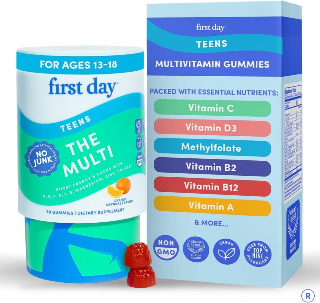 - First Day Convenience: Make wellness a priority with a convenient 30-day supply of teen multivitamin gummies, fitting seamlessly into any busy schedule. Enable your teen to take control of their health independently; with easy, once-daily dosage, they’ll never miss a day of essential nutrients. Trust First Day to provide peace of mind, knowing you are supporting your teen’s growth and energetic lifestyle with ease and efficiency.